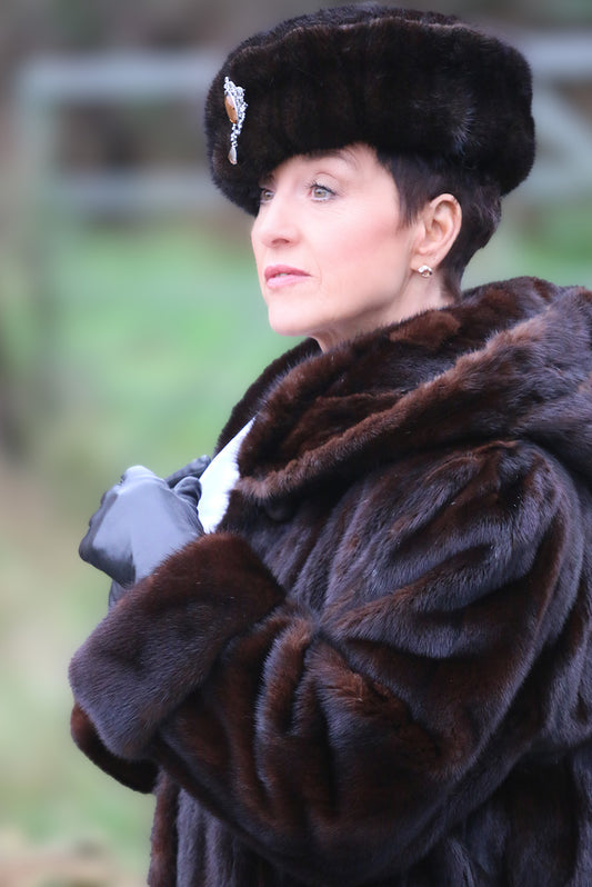 Hooded vintage female mink coat
