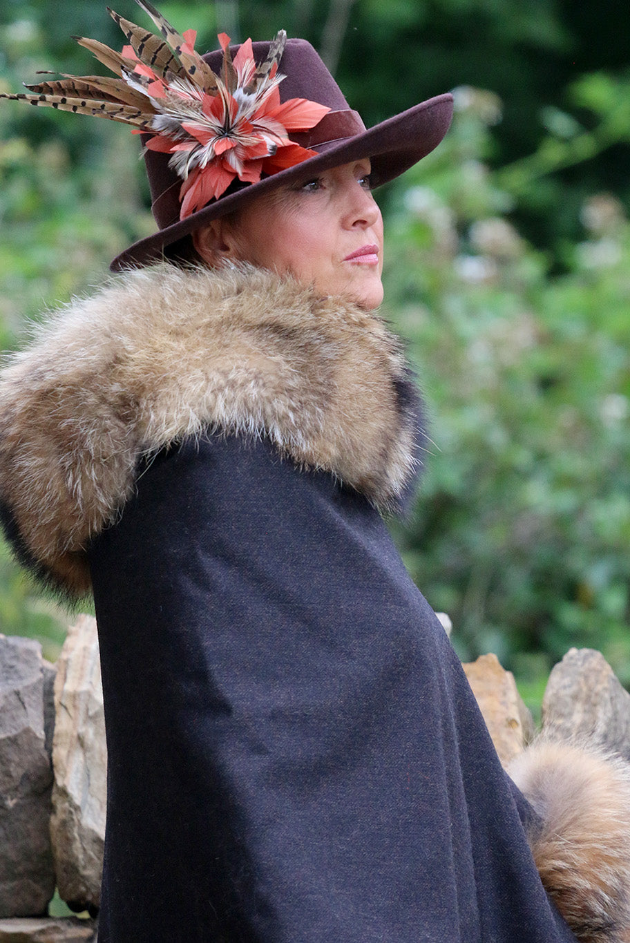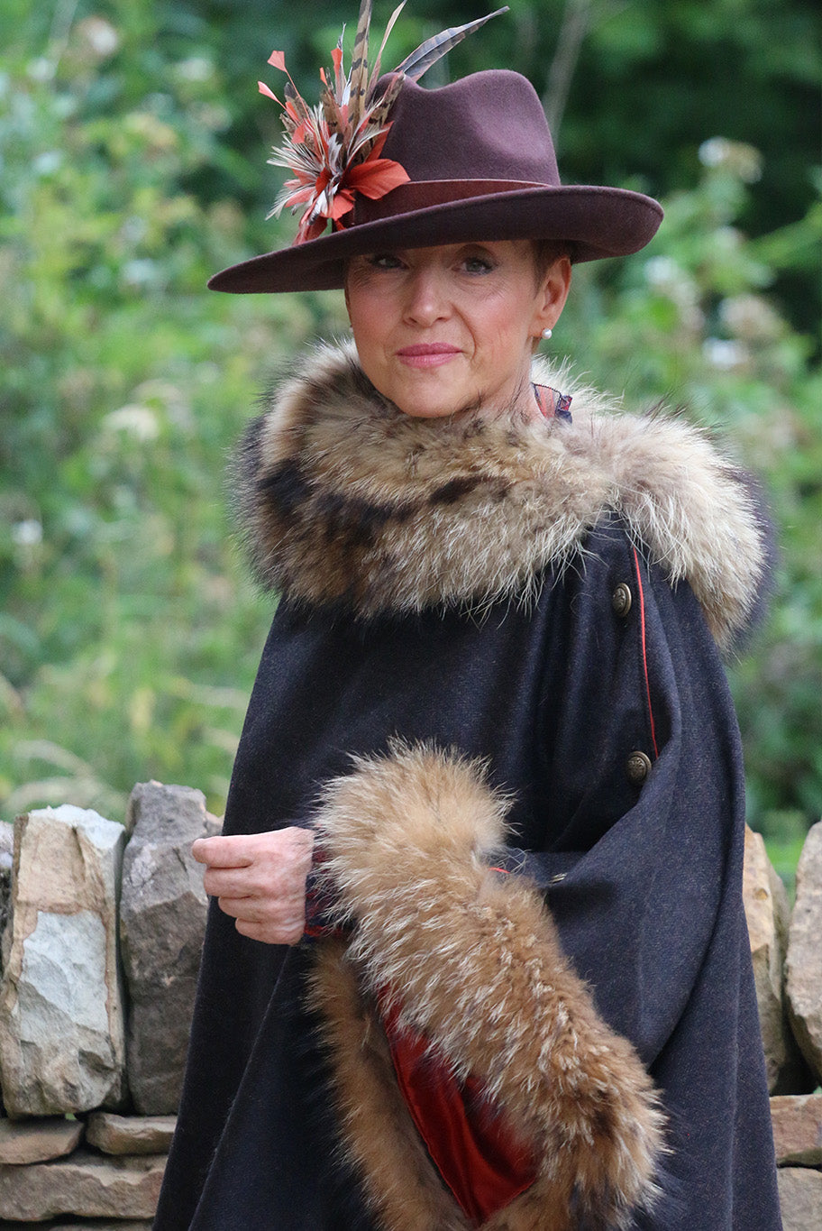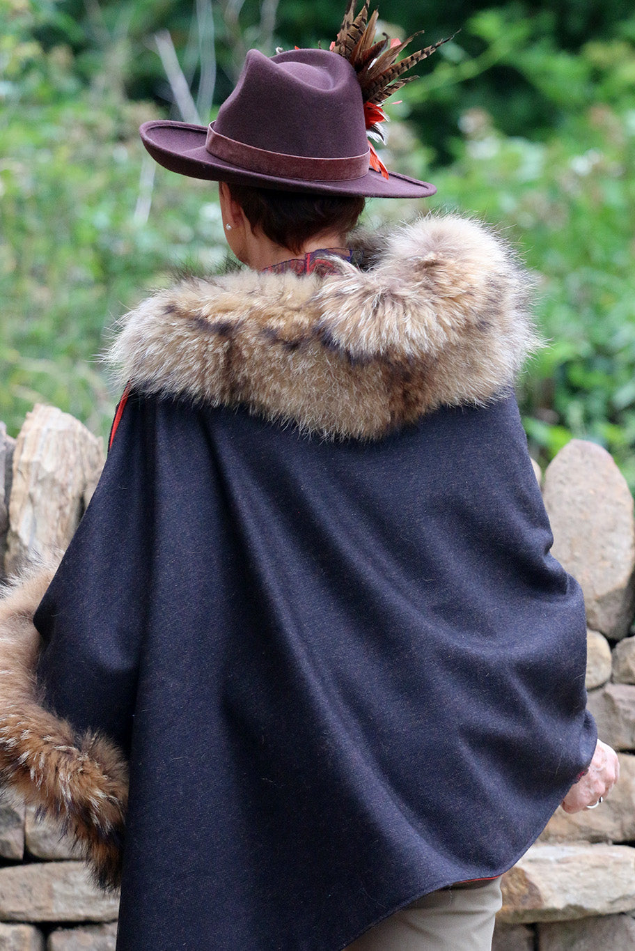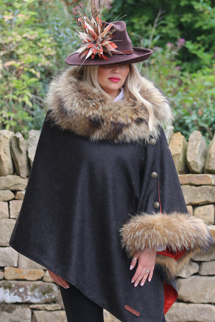 Experience country couture at its finest with the exquisite Le Jabot Charnie cape. Elegantly crafted from sustainable, locally-sourced materials, this timeless piece is made from dark brown 100% wool tweed and featuring a luxurious natural coloured fur collar and attached cuff, this fully lined cape is finished with antique buttons and meticulously handcrafted in England.