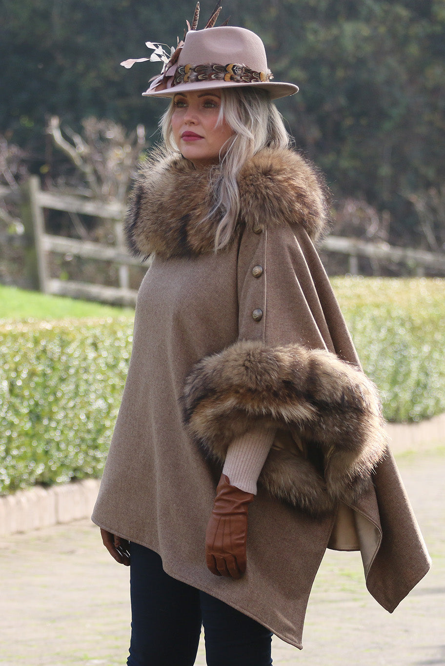 This fabulous fedora hat is adorned with stunning game feather display and contrasting dark velvet band for a truly unique look. Colour; camel 100% wool. Elegant and stylish.