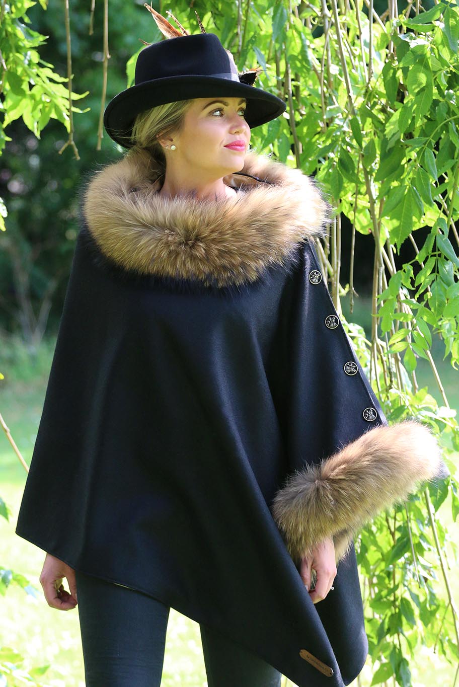 Look truly amazing in one of our most striking and distinctive combinations of black 100% British wool tweed with natural super deluxe collar and cuff, fully lined and complete with antiqued stags head buttons.