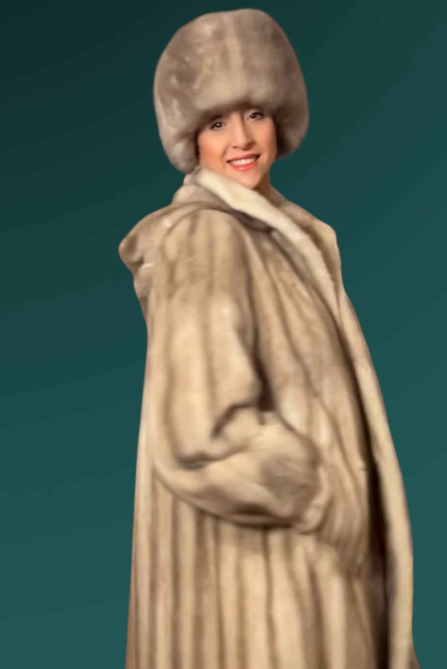 Indulge in timeless elegance with this exquisite vintage sapphire mink hooded coat. Crafted from sumptuous mink fur in a captivating deep blue tone, this luxurious piece combines sophistication with practical style. The distinctive hooded design offers both glamour and functionality, while the impeccable condition speaks to its careful preservation. A statement garment that elevates any wardrobe, this coat embodies the refined luxury of vintage couture—perfect for those who appreciate genuine quality and enduring beauty.