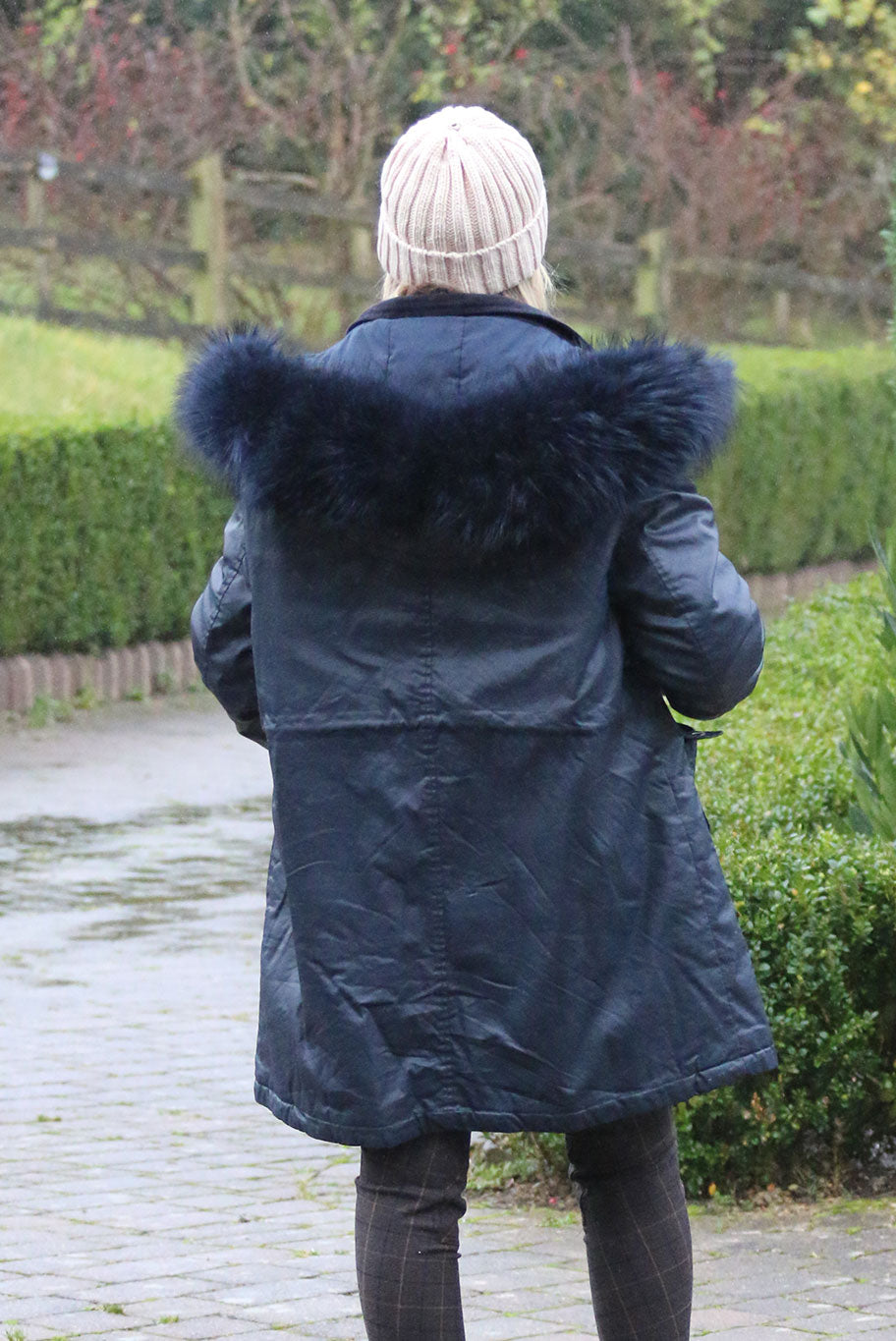 Practical and stylish for all the British weather can throw, Limited edition, available in a range of colours Black, Navy, Green, Brown and Plum. Wax parka style coat with deluxe style navy fox fur trimmed hood. Stay dry, warm and stylish this Winter with this gorgeous lined wax coat features detachable fur trimmed hood, inner waist draw string, cord cuffs and collar, zip and popper fastening and multi pocketed.